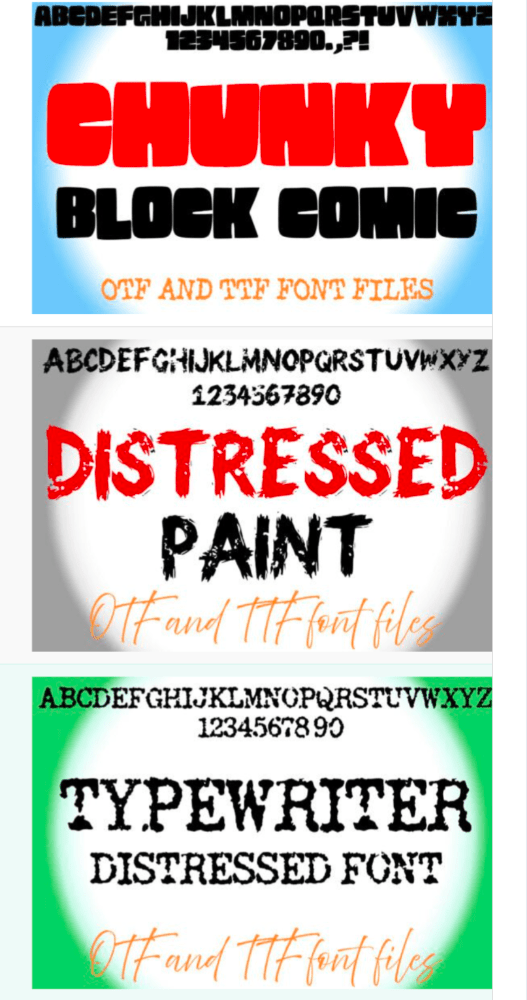 These unique font designs, and over 200 more, are available to download at Creative Fabrica, Etsy, Teachers Pay Teachers and Design Bundles. Links are on my profile. Or message me to find the font your project deserves!