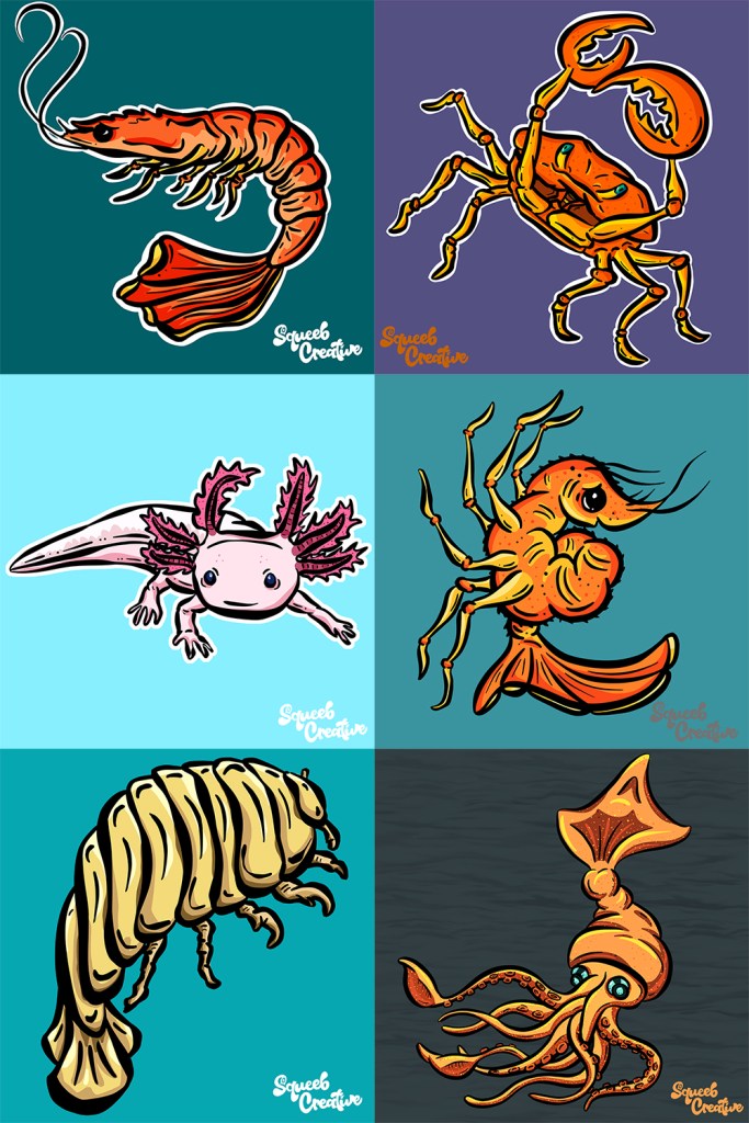 Some of my current cartoon logos and designs that I’ve created for clients, and some personal projects that are available to buy at Tee Public! https://www.teepublic.com/user/squeebcreative I work with clients all over the world If you would like a unique logo, mascot or help with concept design then please contact me at squeebcreative@outlook.com